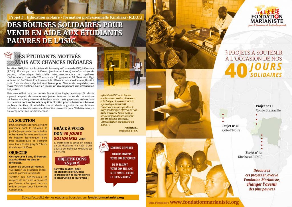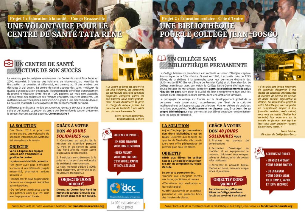 Cette année, le bénéfice de ce temps fort sera destiné à la famille marianiste d’Afrique pour les aider dans 3 projets.