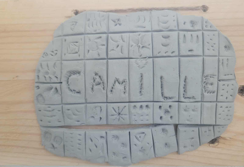Les révisions d’histoire des élèves de CM2 les ont conduits de la Préhistoire à l’Antiquité en passant par la découverte de la première écriture dite « cunéiforme »…Chacun des élèves de M. Bisch s’est donc essayé à un nouveau geste scripteur sur l’argile muni d’un stylet taillé dans une branche ou brindille…